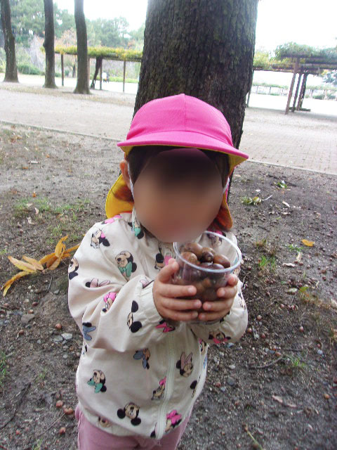 足元には 大きさや、形の違うたくさんのどんぐりさん😲